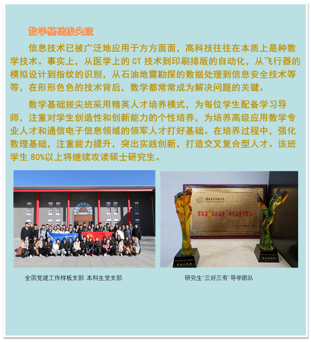 历经多年发展,公司一级学科、二级学科门类齐全,博士点实现数学一级学科全覆盖,硕士点实现二级学科全覆盖。其中,应用数学学科是全国首批硕士点之一,是1996年全国数学学科唯一新增的博士点、西北地区第一个应用数学博士点、陕西第二个数学学科博士点,全校第一个理科博士点。数学学科近三年均入选上海软科发布的 “中国最好学科排名”,2019年排名进入前20%。对于优秀的本科生、硕士生、博士生公司推荐参加国家留学基金委资助的海外访学、联合培养、攻读学位等专项项目。
