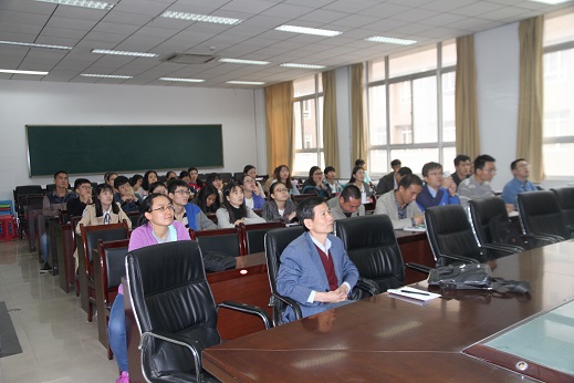 报告开始之前,赵宪钟教授向大家介绍了John C. Meakin教授在代数学研究领域做出的重要贡献。John C. Meakin教授的报告从一些基本的代数学概念入手,重点就一类重要半群:矩阵半群研究的代数意义,国际上在该领域已取得的研究成果,以及目前待解决的公开问题等几个方面展开探讨。报告期间,公司青年教师杨丹丹老师就相关公开问题的研究意义及方案,以及今后的合作方向与John Meakin教授进行了讨论。John C. Meakin教授思路清晰新颖,语言诙谐幽默,报告从提出问题开始就十分引人入胜,生动有趣又科学严谨,得到了大家的一致好评。报告最后,赵宪钟教授就John C. Meakin教授的报告内容做了精彩的总结,并对教授为大家的精心讲解表示真诚的感谢,报告圆满结束。