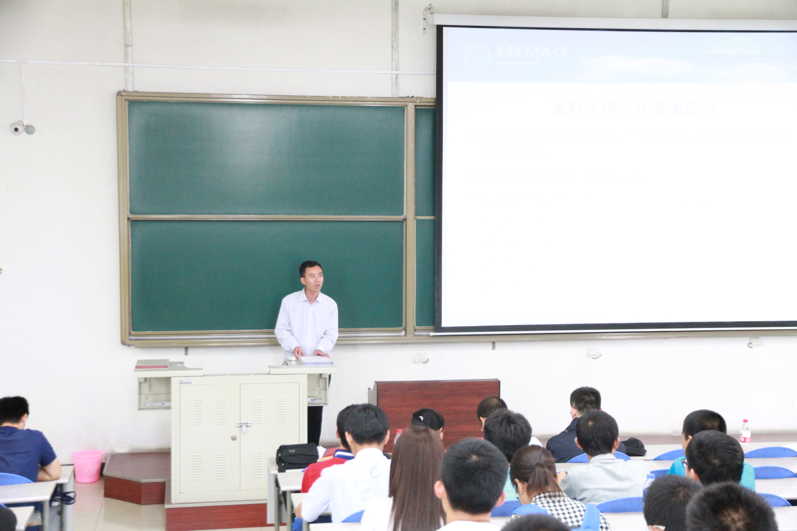 为了使2015级新生充分了解公司及专业情况,尽快适应老员工活,9月11日下午,betway88西汉姆联在B433召开了2015级新生教育暨班主任任聘仪式,公司党委书记高俊亮,党委副书记房亮老师,本科生导员候其锋老师,公司教师杨丹丹、李本崇、张哲、宁万涛,院员工会主席崔康及全体新生参加了仪式,仪式由公司代理团委书记靳志伟老师主持。