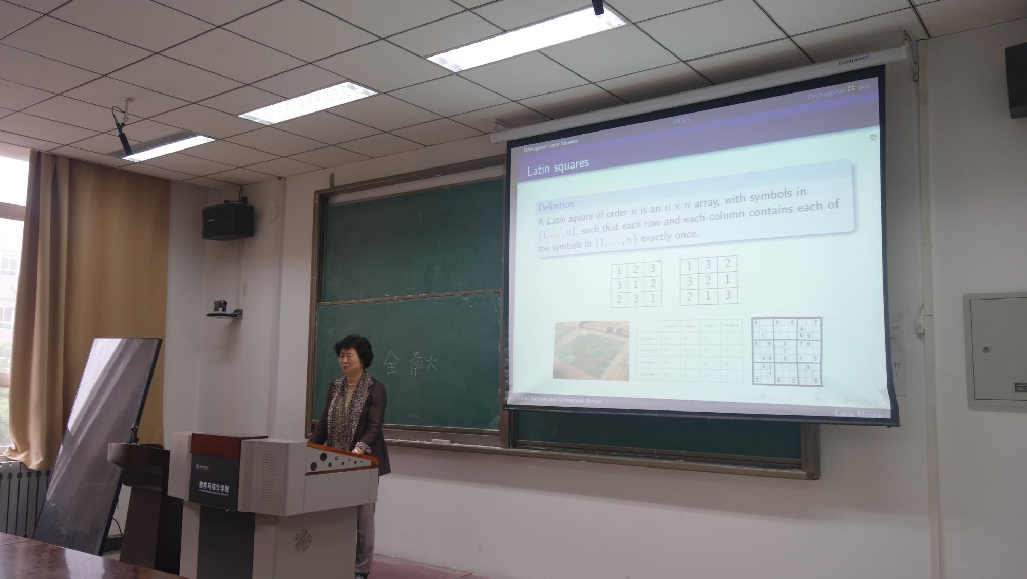 Im教授的报告主题是正交拉丁方。关于正交拉丁方的存在性Euler猜想当n取某些特殊值(模4余2)时不存在正交的n阶拉丁方,虽然他的猜想被后人证否了(只当n=2和6时不存在),但这一猜想促进了人们对于正交拉丁方的研究。Im教授首先回顾了关于Euler猜想的研究历史,然后介绍了她关于推广的正交拉丁方的研究成果。