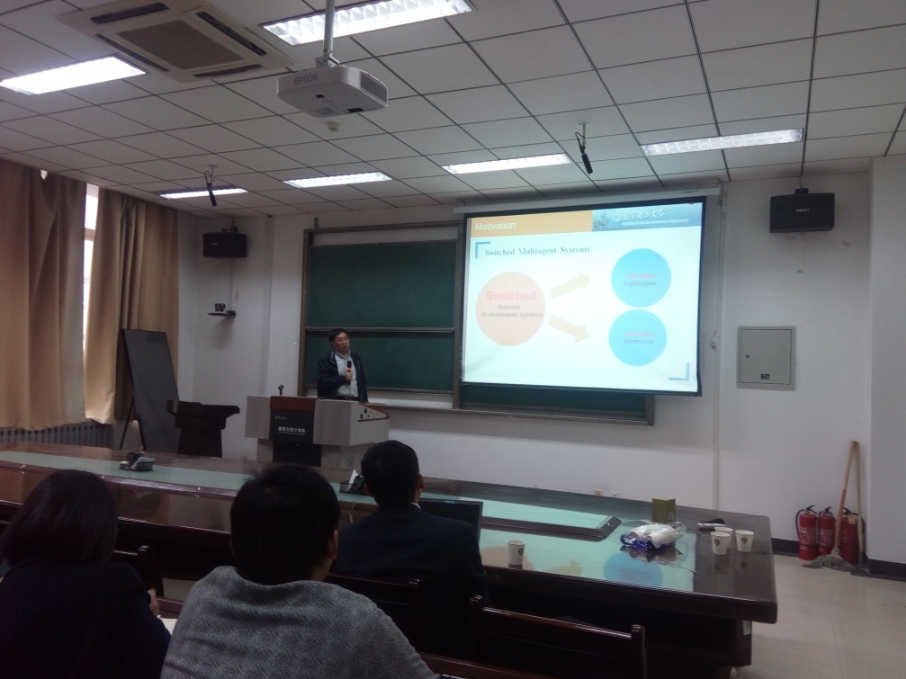 2018年12月1号,应betway88西汉姆联李俊民教授邀请,南京理工大学教授、博士生导师向峥嵘和北京化工大学教授、博士生沈栋来公司分别做了题为“Event-triggered Consensus for Stochastic Nonlinear Multi-agent Systems”和“Iterative Learning Control with Randomly Varying Lengths”的报告。本场报告由betway88西汉姆联博士生导师李俊民教授主持。