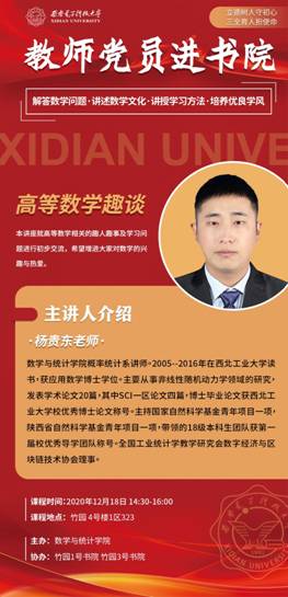 12月18日下午2:30,杨贵东老师在竹园3号楼2区222研习室以“高等数学漫谈”为题做了分享。