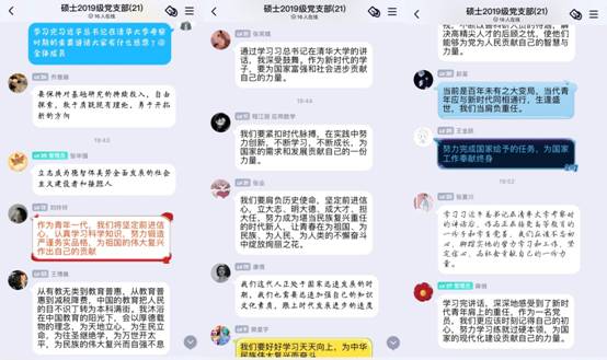 杨雪同志谈到,当代中国青年是与新时代同向同行、共同前进的一代。生逢盛世,更应深刻认识自身肩负的历史使命,深刻理解把握时代潮流和国家需要,在真刀真枪的实干中成就一番事业。马若男同志认为:当代研究生是与新时代同向同行、共同前进的一代,生逢盛世,肩负重担,把肩负的责任化作进步的动力和奋斗的激情。要勇于创新,深刻理解把握时代潮流和国家需要。我们要敢为人先、敢于突破,以聪明才智贡献国家,以开拓进取服务社会。
