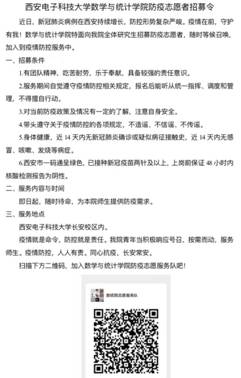 为保障各类工作顺利进行,公司动员全院上下,发布《给全体员工的疫情倡议书》,从疫情防控、心态稳定、投身抗疫等方面倡议全体员工积极应对疫情;发布防疫志愿者招募令,组建了党员抗疫先锋队,多名教师和员工积极活跃在抗疫工作中,为疫情下的校园稳定贡献力量;为了全力以赴做好疫情防控下的研究生考试工作,公司积极动员广大教职工报名,全体公司领导班子作为第一梯队带头参加,系主任、支部委员、工会组长、教工积极分子都积极响应,全院一共有20多名教职工确认参加,部分同志已经投入到前期社区志愿服务活动中。