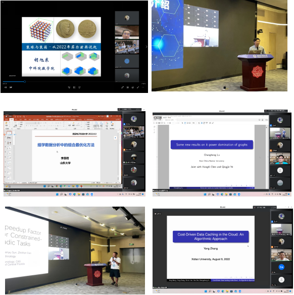 9日上午大会的第一场报告是由刘三阳教授主持的胡旭东研究员带来的《装球与装箱–从2022年菲尔兹奖说起》,内容深入浅出,生动有趣,之后由张胜贵教授主持徐大川教授和李国君教授的报告,他们分别介绍了近似算法设计与分析和组学数据分析中的组合最优化方法,内容丰富,具有启发性。下午,吕长虹教授,韩鑫教授,张涌研究员和白旭清博士分别介绍了k-power domination问题的相关结果,Partitioned EDF算法的改进,数据缓存相关算法及彩虹非连通染色的相关结果,都是最新研究成果,会场交流充分,讨论气氛热烈,与会人员受益匪浅。