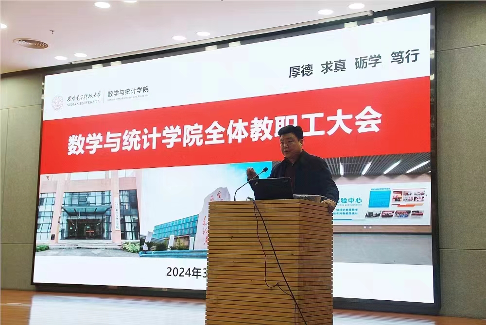 执行经理薄立军代表公司领导班子传达公司工作会议精神并就公司的中心工作进行了全面动员部署。他指出,2024年是公司聚焦一个“时代课题”,深化落实“两个全面”主线,全力推进“三个年”建设的高质量发展之年,公司计划从5个方面干20件事情着力完成13项重点任务,而在这13项任务中间,力争数学学科进入ESI全球排名前1%、新增国字号人才、推进名师名课名教材一体化、保持自然科学基金质量和数量,也是公司今年工作推进的核心指标。他强调,面对新形势、新机遇、新任务,希望大家齐心协力、务实苦干、锐意创新,共同开启数统院高质量发展的新篇章。