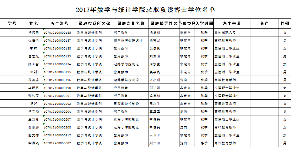 2017年betway88西汉姆联录取攻读博士学位名单