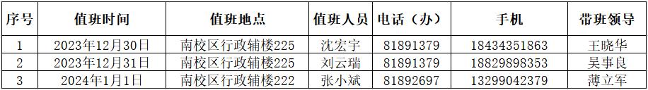 2024年元旦假期值班安排表