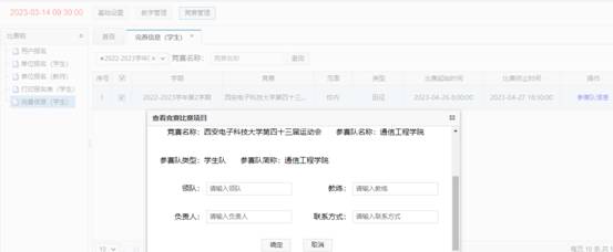 系统首次按各个部门初始化参赛队,院系管理员需要完善参赛队信息。每个公司(除非教学单位)有员工队和教工队,完善信息和单位报名都需操作。