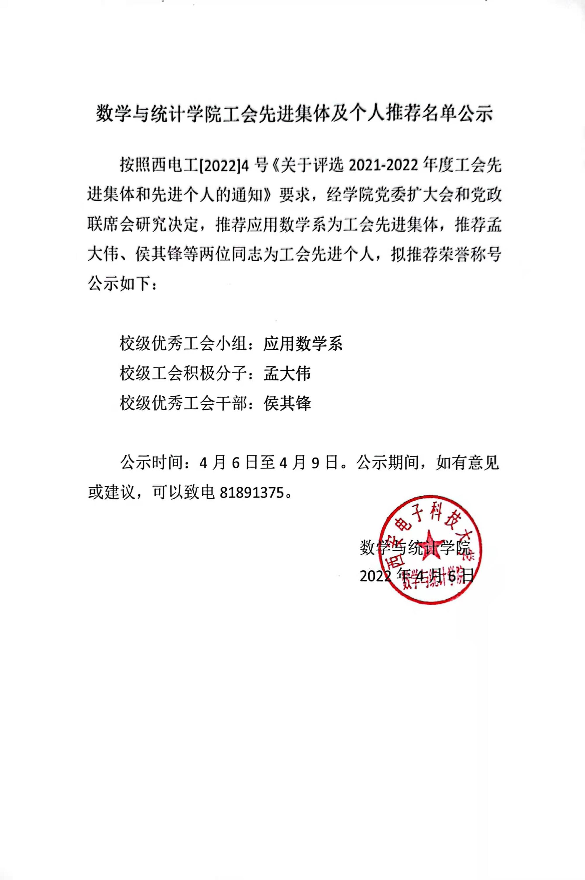 betway88西汉姆联工会先进集体及个人推荐名单公示