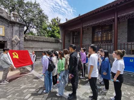 在杨虎城将军公馆,西电数统院硕士2019级党支部宣传委员麻俏带领大家面向党旗,举起右拳,重温入党誓词。一个个铿锵有力的音符在每个人耳边萦绕,每一句誓词都在心底刻下了深深地烙印,鞭策我们牢记共产党人的初心和使命。