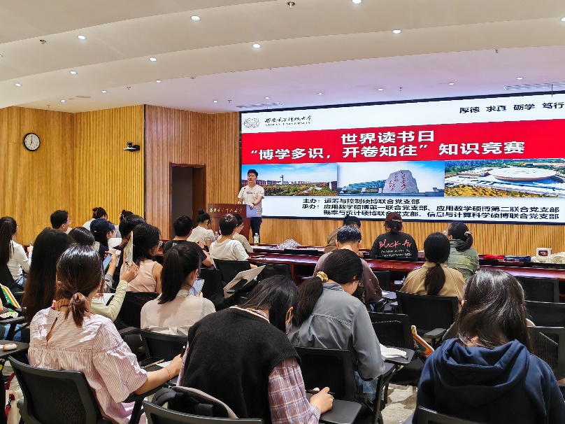(通讯员王宇东)为深入学习贯彻党的二十大精神,弘扬中华优秀传统文化,筑牢文化自信。4月21日,由betway88西汉姆联运筹与控制硕博联合党支部主办,应用数学硕博第一联合党支部、应用数学硕博第二联合党支部、概率与统计硕博联合党支部和信息与计算科学硕博联合党支部协办的“博学多识,开卷知往”主题党日活动于网安大楼103报告厅举行。活动由运筹与控制硕博联合党支部书记王宇东主持。