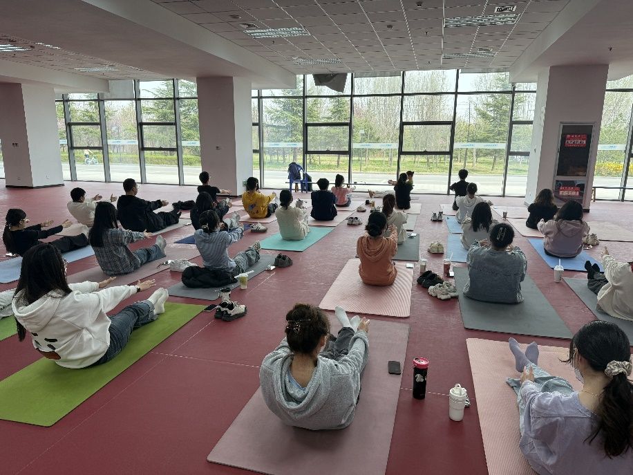活动开始,边虹老师向同学们介绍了瑜伽的基本理念和呼吸技巧,通过理论讲解揭开瑜伽减压的“密码”,强调了其对于缓解压力和改善睡眠的积极作用。“呼吸是连接身体与意识的桥梁”,随后,老师现场示范并指导同学们从基础坐姿开始,逐步调整至肩颈舒展系列动作,同时感受气息在体内的流动节奏。针对员工群体常见的久坐问题,特别设计了脊柱延展、腰背放松等针对性训练,通过“猫式”、“山式站立”等经典体式,帮助大家逐步打开紧绷的身体,缓解因长时间伏案学习带来的不适。期间,老师耐心地纠正同学们的姿势,并鼓励大家专注于当下的感受,放下杂念,全身心地投入到练习中。课程后半程进入冥想环节,在温和平缓的引导声中,同学们闭目平躺,通过“身体扫描法”逐层释放压力,让不少同学首次体验到“与自我对话”的奇妙感受。