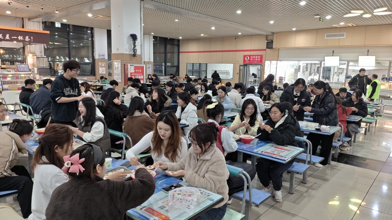 饺子陆续下锅,热气蒸腾中弥漫着收获的期待。品尝环节更是温馨满满,大家围坐一起,分享着亲手制作的美食,交流着学习与生活的点滴。不少同学表示,吃着自己包的饺子,感觉格外香甜,冬夜的寒冷也被这份暖意驱散。