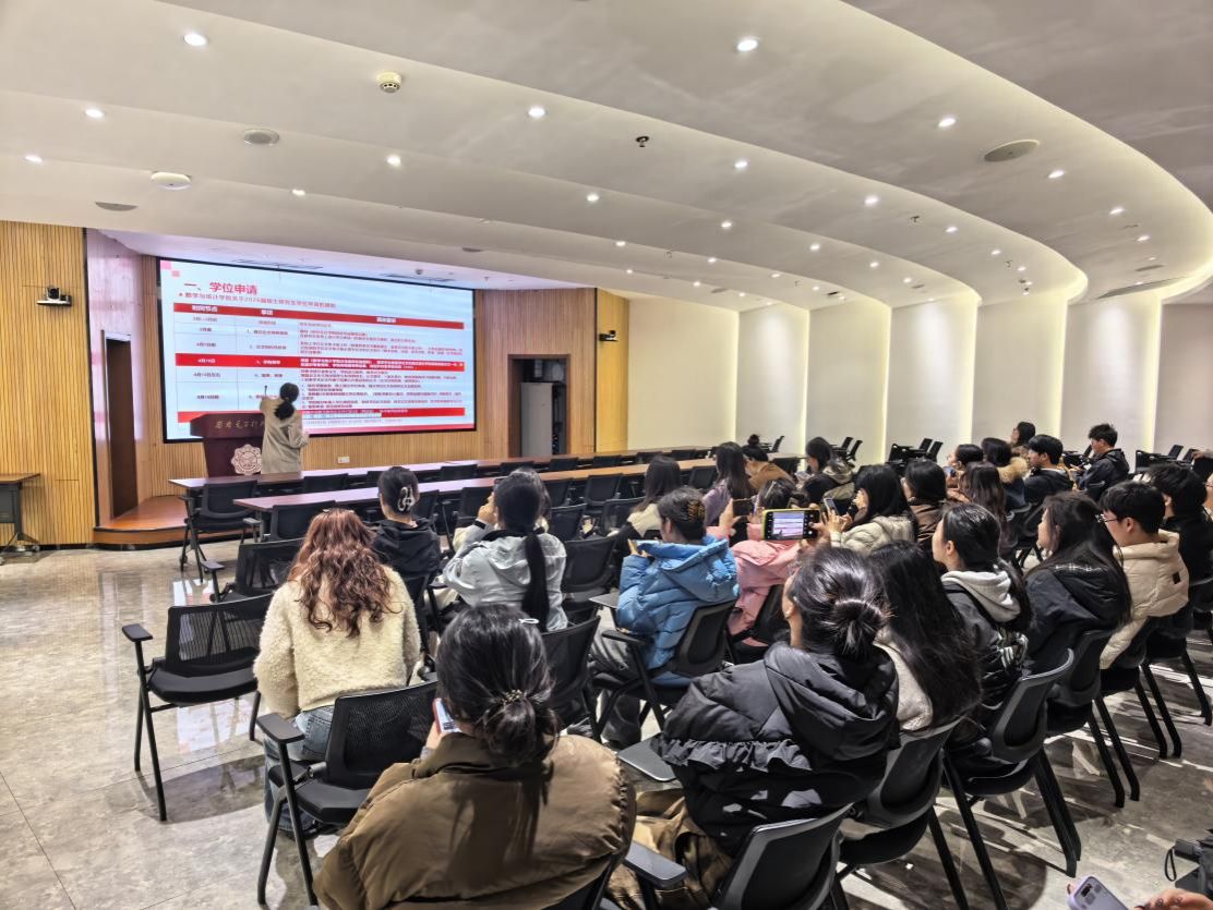 班会紧扣不同年级研究生的核心任务,实施分层分类指导。针对2023级毕业生,重点解读学位申请全流程,确保相关工作顺利完成,同时提醒大家及时核对学籍信息、结清欠费,保障申请有序推进。面向2024、2025级研究生,班会着重强调日常教育管理要求,引导同学们科学规划学业、严守校纪校规。此外,辅导员在班会中再次向同学们梳理了校外住宿备案、请销假、学期注册等高频手续,详细讲解微信企业号与一网通办操作路径,明确审批流程与查询方式,提升办事效率;同时介绍校园便民资源,公布心理健康咨询、校医院挂号及医保服务流程,罗列校院职能部门联系电话,为研究生化解身心困扰、解决生活难题提供全方位支持。