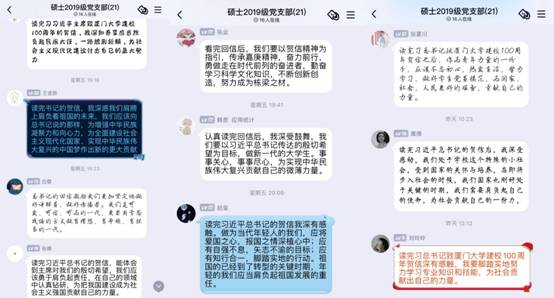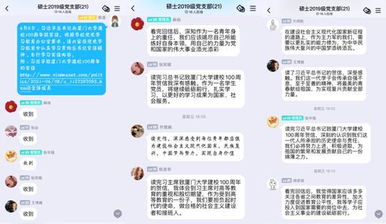 4月6日,中共中央总书记、国家主席、中央军委主席习近平致信祝贺厦门大学建校100周年,向全体师生员工和海内外员工致以热烈的祝贺和诚挚的问候。贺信在全国教育系统广大干部师生中引发热烈反响,betway88西汉姆联硕士2019级党支部全体成员热议回信内容。