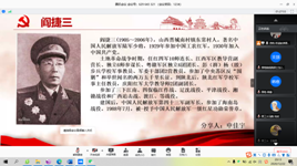 会议第二项由betway88西汉姆联硕士生2019级党支部全体党员进行“学四史,网上重走长征路”有关的人物事迹或景点分享,此次分享由线上线下两部分组成,在校同志集中在信远二区220会议室,实习同志通过线上分享。