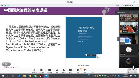 活动伊始,清华大学工业工程系工8党支部书记徐军书记和betway88西汉姆联数学与统计公司党支部书记赵春霞老师先后介绍各自党支部制度建设、队伍建设、及示范区建设等基本情况。随后,清华大学工业工程系工8党支部的成员以小组为单位进行读书分享。赵星浩同学读书小组分享了著名经济学家林毅夫教授的《解读中国经济》,以国企改革和“三农”问题为重点,深入浅出地向同学们介绍了该书的精华;董恒同学读书小组为大家介绍了社会学家周雪光教授的《中国国家治理的制度逻辑》,他们从中央政府与地方政府之间的关系和国家与民众之间的关系多个角度多视野出发,分享和探讨了本书观点。
