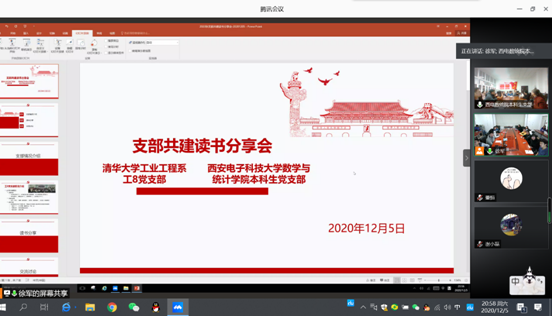 (通讯员:李泽宇)为搭建基层党支部交流平台,加强基层党支部建设,增强员工党支部的凝聚力和战斗力,2020年12月5日21时,betway88西汉姆联数学与统计公司党支部与清华大学工业工程系工8党支部通过腾讯视频会议的方式共同举办读书分享会活动。此次活动旨在加强支部建设,推进“两学一做”学习教育常态化制度化,落实意识形态工作责任制。第一次共建活动由清华大学工业工程系工8党支部书记徐军书记主持,清华大学工业工程系工8党支部全体党员、betway88西汉姆联数学与统计公司党支部全体党员及发展对象参加。