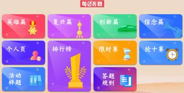 此次知识竞赛题目范围涵盖党史、新中国史、改革开放史、社会主义发展史的相关内容。以个人账号登录进入答题区后,可以选择每日答题或PK模式进行答题,获得积分。每日答题:选择英雄篇、复兴篇、创新篇、信念篇答题,系统按内容随机出20道题,限时10分钟,每题1分,根据选手答对的题数进行积分,分数计入个人积分。PK模式:选手选择限时赛或抢十赛后,由系统随机匹配对应省份参与PK模式答题的对手。限时赛为双方在3分钟内,答题数量多者胜,最多30题。抢十赛为双方在3分钟内,先答对10题为胜,PK胜利获得30积分。