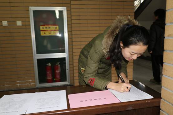 8:30不到,已经有大半同学来到考场外,他们将书包放置在指定位置,在考场记录表上庄严签字,并在《数学与统计公司党员诚信考试承诺书》上郑重签上自己的名字,随后使用金属探测仪自检后进入考场,他们的眼神是坚毅坚定的,神态是自信满满的,连他们的步伐给人的感觉都是轻盈质感的。