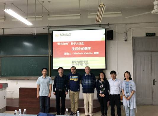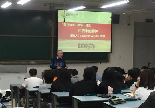 5月15日下午,俄罗斯科公司Steklov数学研究所Vladimir Vatutin教授应邀在B105教室为betway88西汉姆联师生作了题为“生活中的数学”通识性学术报告。此次报告为数统院“数往知来”数学大讲堂系列活动的首场,报告会由靳志伟老师主持,乌克兰基辅大学教授Igor Samoilenko、数统院经理马如云教授、公司党委副书记王佩、概率统计系副教授董从造等出席了本次活动,一百余名数统院本科生聆听了此次报告会。