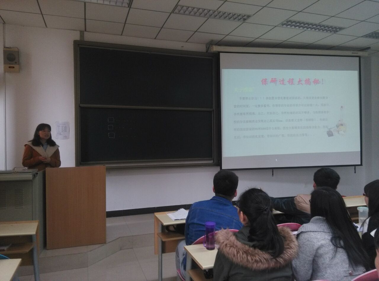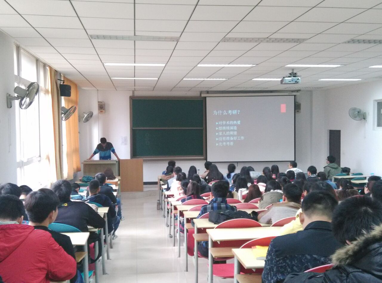 靳瑾同学是信息与计算科学专业的员工,她以专业第一名的成绩保送至中科院数学与系统科学公司,她的报告主题为“每个人都会拥有美好的未来”,从保研的条件、准备过程、夏令营的笔试和面试以及导师的选择上为同学们分享了经验,她谈到“要给自己定计划,享受完成任务的满足感,让自己充实起来。”她鼓励大家要坚持学习,锻炼出扎实的专业基础。高阳同学参加了2016年研究生考试,考取了厦门大学统计学专业的研究生,他从“为什么考研”、“考什么公司”、“什么是学硕专硕”、“如何准备考研”等问题为同学们做了详细的解答。高阳同学以自身的学习经历为例,介绍了自己的求学历程,和同学们分享了自己遇到的挫折和问题,耐心的为同学们传授自己的经验。他希望同学们能认真钻研专业课,坚持不懈的努力终将会有回报。
