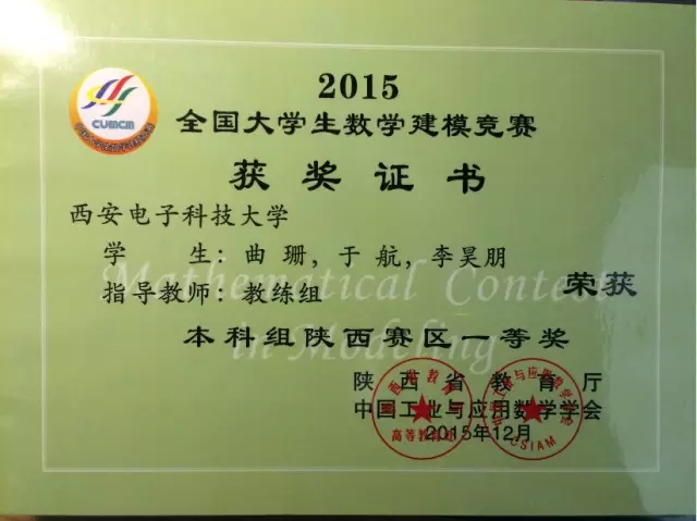 2015年11月获得全国老员工数学建模竞赛(CUMCM)省级一等奖