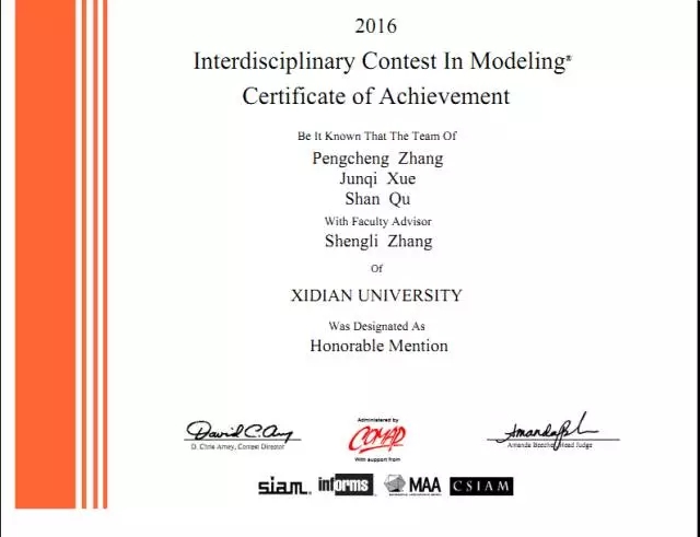 2016年04月获得国际数学建模竞赛(MCM)二等奖