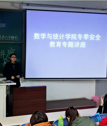 辅导员侯其锋老师结合近几年发生在高校的案例,从宿舍安全、水电安全、防盗防骗、人身财产安全等多个方面,给同学们做了一个安全教育的专题讲座,列举了安全事故的危险性,并根据存在的安全隐患提出了解决的方案以及防范的措施。特别提醒同学们,冬季干寒,火灾易发,千万不要在寝室使用“热得快”、热水壶、电热毯、暖手宝等大功率电器。另外,冬季经常有雾水,路面易结冰,过马路一定要遵守交通规则,过人行横行道时应多观察,外出或返校不要乘坐非法营运车辆。