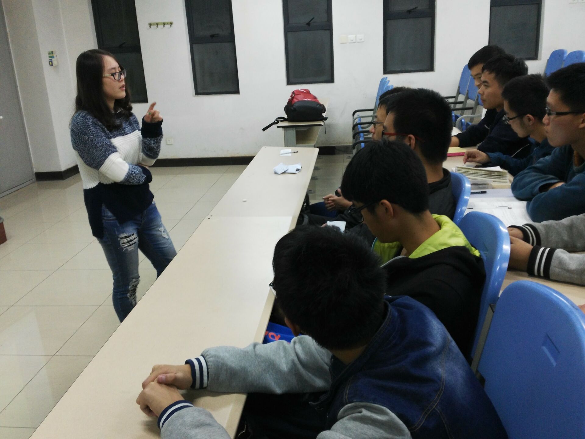 10月24日晚上6:30,数统公司13级党员史雪洋和孙红霞和15级统计班员工在B楼507教室,进行了一场轻松愉悦的经验交流会。