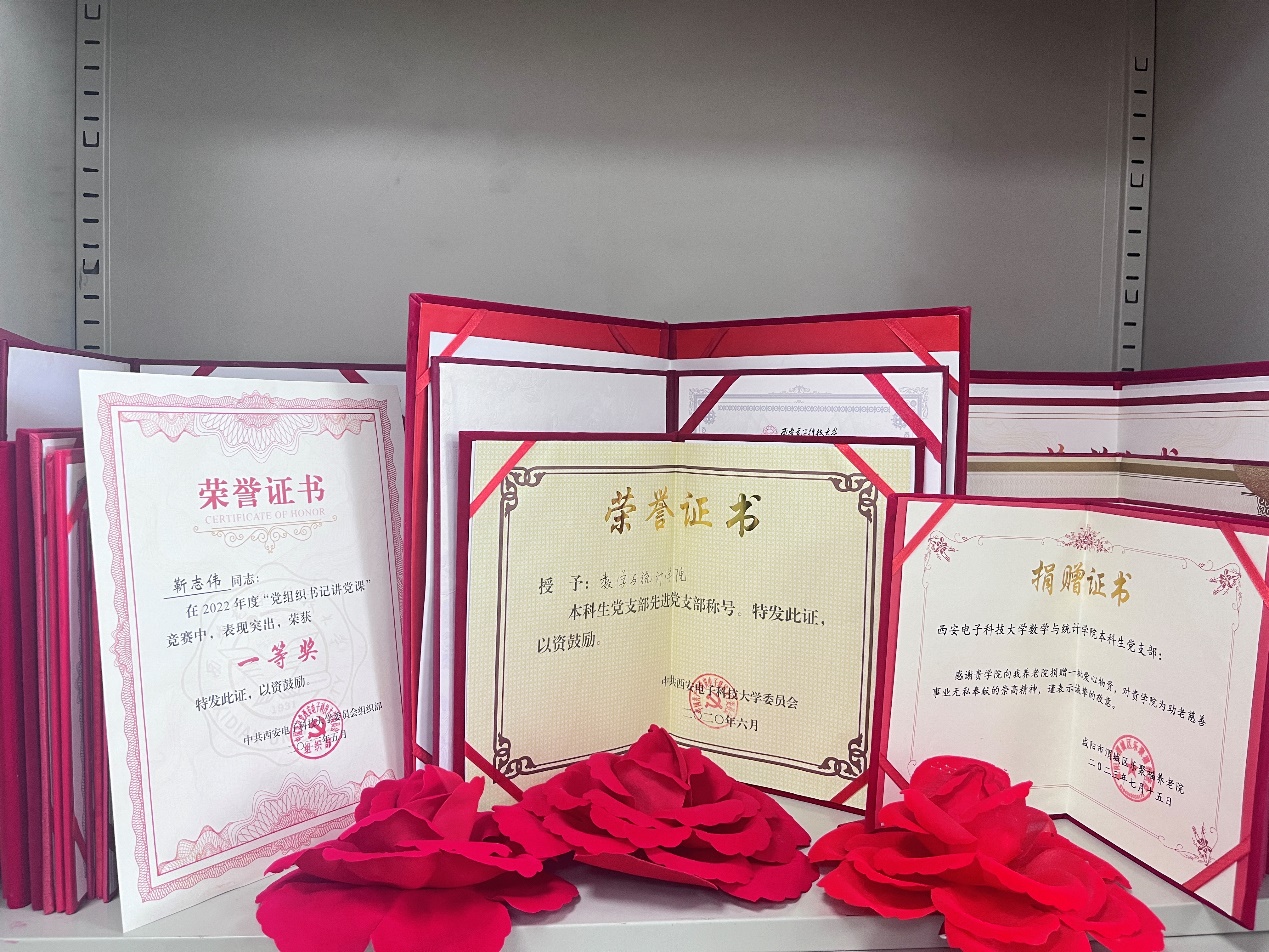 2018年,数统院本科生党支部入选教育部首批全国党建工作样板支部;2020年,获得校“先进党支部”称号;2022年,入选公司2022年度学雷锋活动示范点。同时,支部书记靳志伟在2016年获优秀党支部书记;副书记赵春霞两次在“员工党支部书记讲党课”竞赛中获得优秀奖。