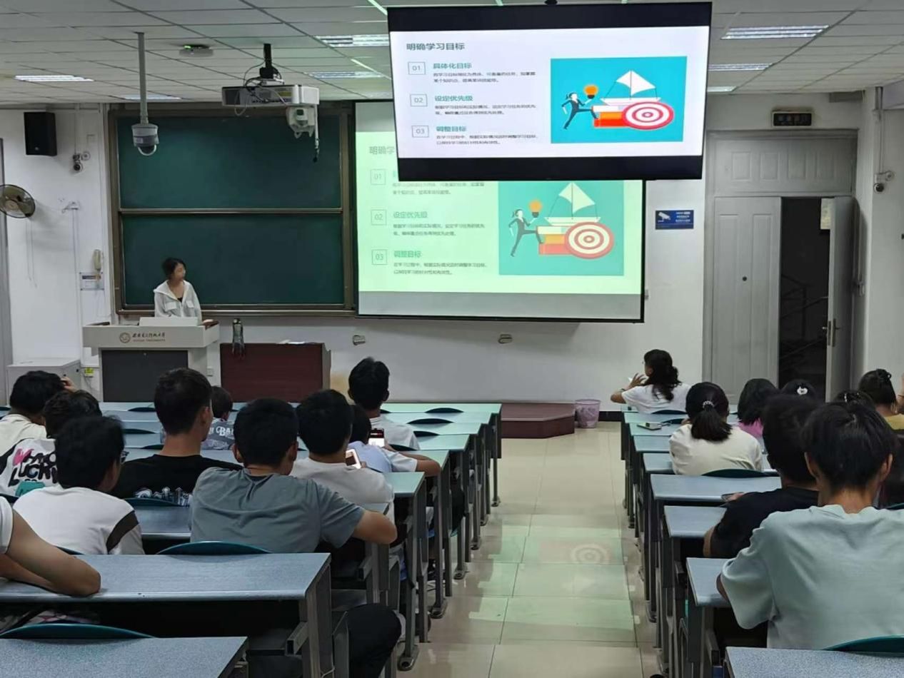 满秋磊同学分享了他在学习过程中的四大法宝:重视课堂学习、课后复习与练习、拓展学习渠道和保持良好学习心态。他详细介绍了如何认真做笔记、积极提问、建立错题本等实用学习方法。此外,他还倡导大家阅读数学书籍,利用在线资源如慕课、B站等,培养同学们合理使用工具和外界资源的能力,为大家的学习之路提供了新的启示;韩亚轩同学分享了自己的学习心得,她强调了明确学习目标、合理利用学习资源、定时专注学习法、学会自主思考与总结等良好学习习惯的重要性,她还分享了高效记忆与复习技巧,如联想记忆法、重复记忆法及复习策略,使同学们在记忆方面有了新的认识。2021级同学王奕为大家带来了竞赛准备的宝贵经验。他详细讲述了数学建模竞赛、全国老员工数学竞赛、密码数学挑战赛等赛事的准备方法,尤其对数学建模竞赛进行了深入讲解。他不仅分享了听课、培训、论文写作和数据分析等方面的实用技巧,还强调了学习往届优秀论文和队友间交流合作的重要性,为同学们参加各种竞赛明确了方向。
