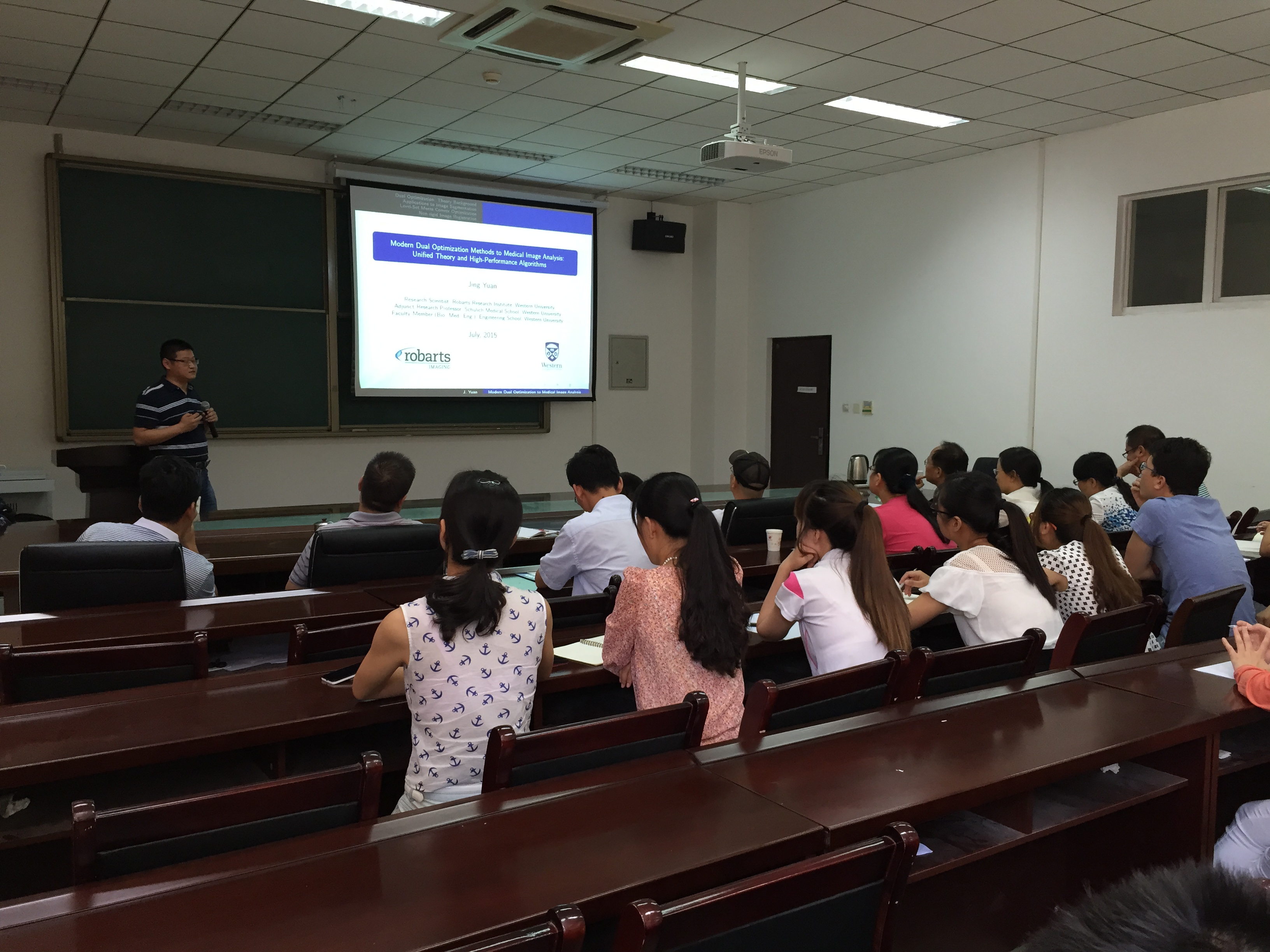 应公司冯象初教授的邀请,加拿大Robarts研究所袁景研究员于7月25日上午在信远楼报告厅做了题为“Modern Dual Optimization Methods to Medical Image Analysis: Unified Theory and High-Performance Algorithms”的...